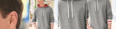 - Lapover neckline with contrast lined hood