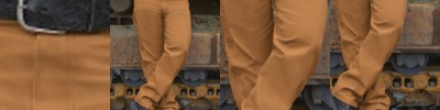 - Two slack-style front pockets, two set-in hip pockets, left pocket has button closure