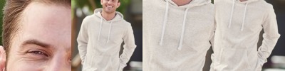 - Double-needle coverstitched hood, raglan sleeve, and band bottom