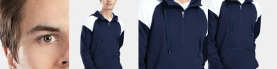 - Three-piece hood with collar stand and interior adjustable drawcord
