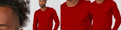 - Spandex reinforced ribbed crewneck collar