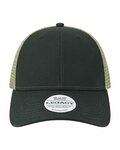 - Heather Tan/Black with mesh back is 55/35/10 acrylic/polyester/wool