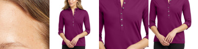 Break away from the ordinary in this button-down style that features cuffed 3/4 sleeves.