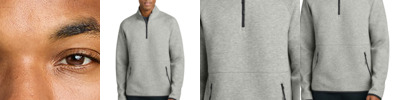 Constructed with a midweight spacer knit fabrication, this modern 1/4-zip can be worn after training, while traveling or as a corporate layer. 8.8-ounce, 56/44 cotton/polyester spacer knit Reverse coil center front zipper Reverse coil zippered pockets Corded black zipper pull with reflective detail Contrast stretch binding on sleeves and hem