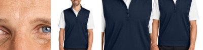 Created with an earth-first attitude, this midweight 1/4-zip vest will stand out in any work or leisure wardrobe. Not only is it easy-to-wear and layerable, but it also boasts superior stretch, snag-resistance, moisture-wicking and UV ray-resistant performance. 7.7-ounce, 89% recycled polyester/11% spandex interlock knit 7.7-ounce, 81% recycled polyester/8% polyester/11% spandex interlock knit (Grey Steel Heather) This product's carbon footprint has been measured and reduced through a combination of preferred materials and investing in carbon offset projects through the ClimeCo Certified Product ™ Program Snag-resistant Moisture-wicking UPF rating of 50+ Self-piped zipper placket Dyed-to-match, recycled, reverse coil zipper with silicone-tipped drawcord pull Self-fabric faced armholes Self-banded hem Tag-free label